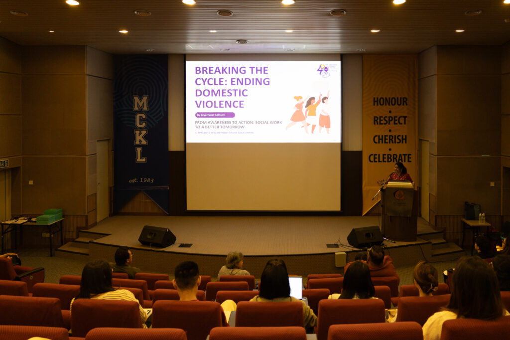 The day began with a powerful presentation by Ms. Jayamalar Samuel, Capacity Building Director at the All-Women’s Action Society (AWAM), on “Breaking the Cycle: Ending Domestic Violence.” Drawing on her experience, she explained the root causes of abuse, the struggles survivors face when seeking help, and the importance of survivor-centred responses. Her session stressed the need for ongoing public education, stronger laws, and community-based support to break the cycle of violence.