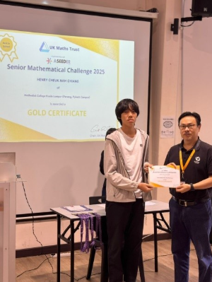MCKL College (Penang, Pykett Campus) is proud to announce our students’ achievements in the Senior Mathematical Challenge 2025. This marks the first time our students have participated in the competition. Three students from the Cambridge A-Level programme took on the challenge, demonstrating their dedication to mathematics and their willingness to push themselves further.